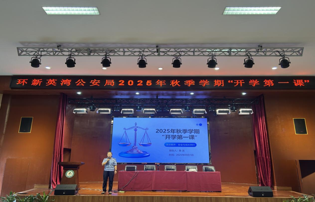 为进一步筑牢校园安全防线,提升学生的安全意识与自我保护能力,2025年9月1日,我校联合环新英湾公安局走进校园开展“安全与成长同行”开学第一课法治教育活动,鲁洁警官主讲,围绕预防欺凌、防溺水、交通安全、预防代购、防网络诈骗、常见易成瘾药物及危害等主题,通过案例分析、警示教育、问答互动等方式,为学生们上了一堂生动精彩的法治教育课。