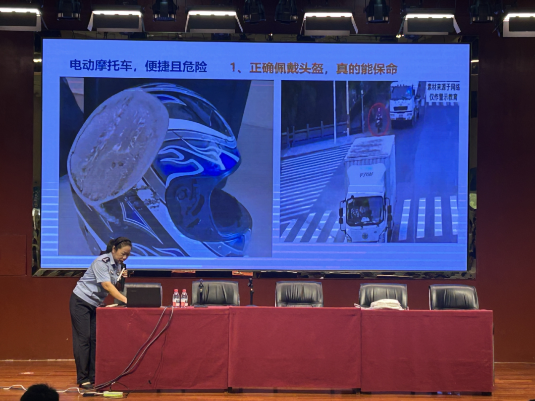讲座中,鲁警官还有序开展了防溺水、交通安全、防电信网络诈骗、禁止“套代购”、禁毒等专题教育。鲁洁警官强调防溺水“六不准”要求,向学生们讲授溺水的常见原因及应急救援措施;普及交通规则,强调正确佩戴头盔、不闯红灯、不横穿马路、不逆行、禁止不符年龄驾驶电动车等规定;深入浅出地阐述了走私的违法后果和打击走私的重要性,用平实易懂的语言揭露了“套代购”的真相,鼓励师生们抵制利益驱使,筑牢自我防护防线。同时,她深入剖析了电信诈骗的多变手法,进一步提升了学生们对电信网络诈骗的辨识与抵御能力;还通过毒品犯罪实例,深刻揭示了毒品对身心健康、家庭幸福及社会稳定造成的严重危害,提醒师生们警惕毒品的新颖性、强欺骗性与高隐蔽性,倡导大家增强自我保护意识,坚决远离毒品威胁。