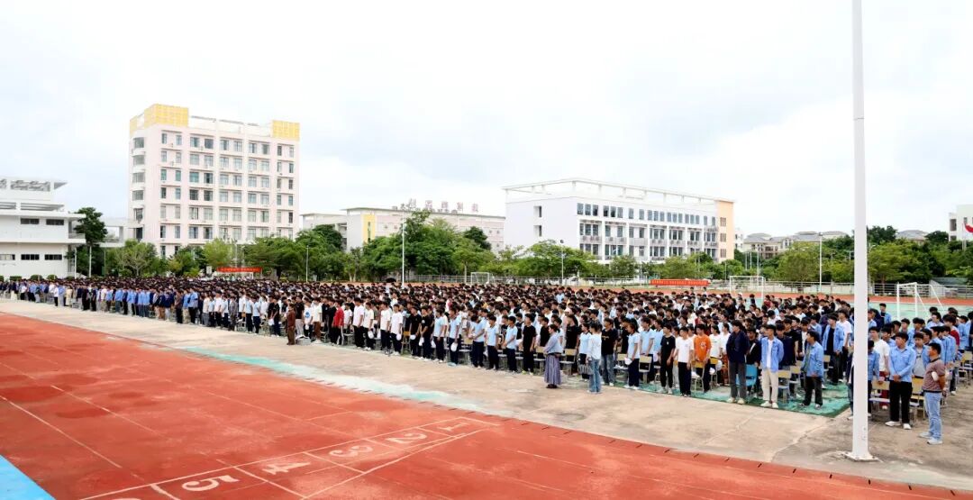 大会在学生科曹帅主任铿锵有力的开场白中正式拉开帷幕。在庄严的国歌声中,全校师生肃立注目,中华人民共和国国歌响彻校园上空,展现了洋浦高级技工学校师生昂扬向上的精神风貌。