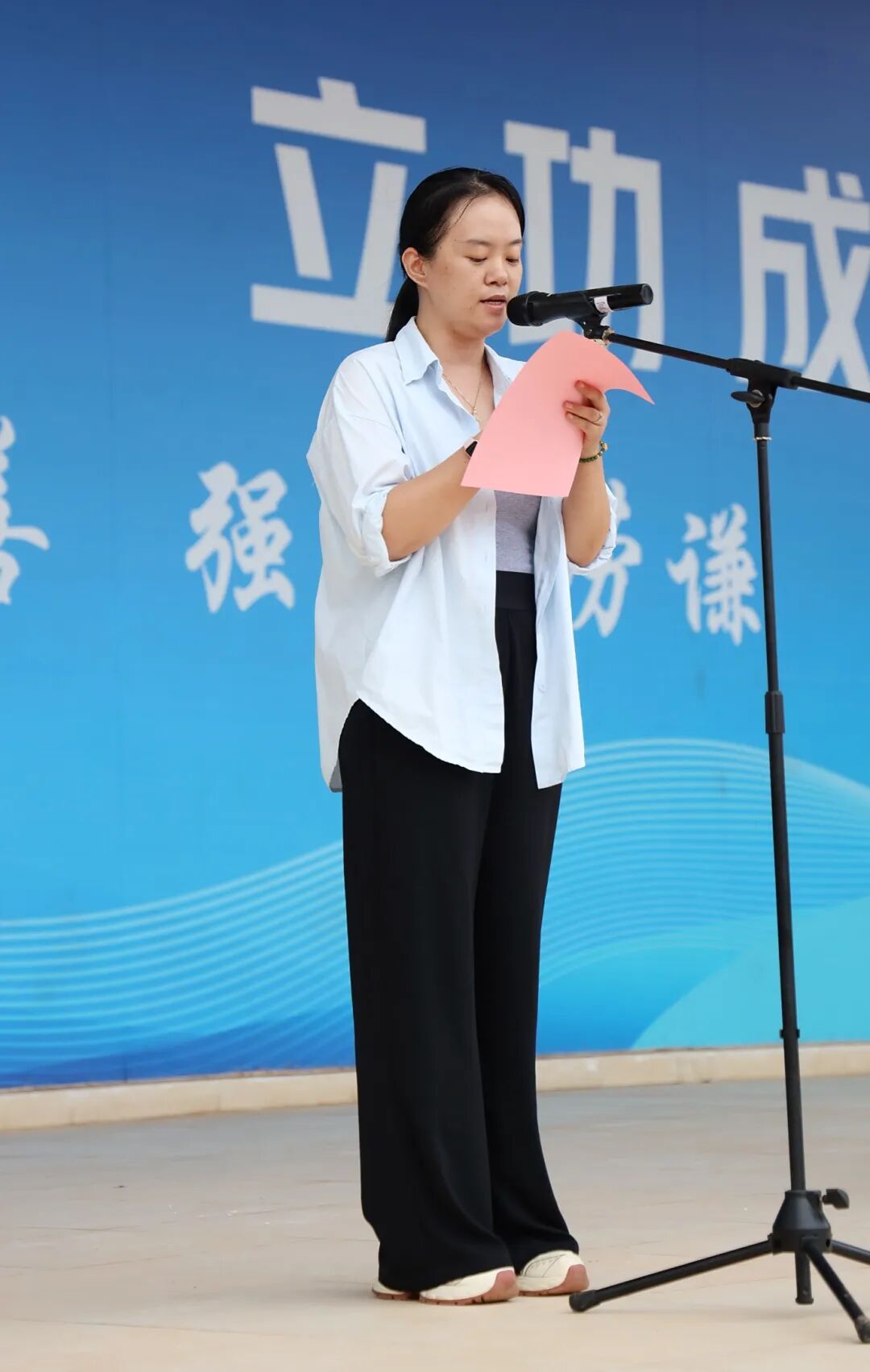 学生代表24物流1班吴敏同学分享了自己的学习心得与成长感悟,表达了对老师和学校的感激之情,并号召全体同学以榜样为镜,脚踏实地、追求卓越。