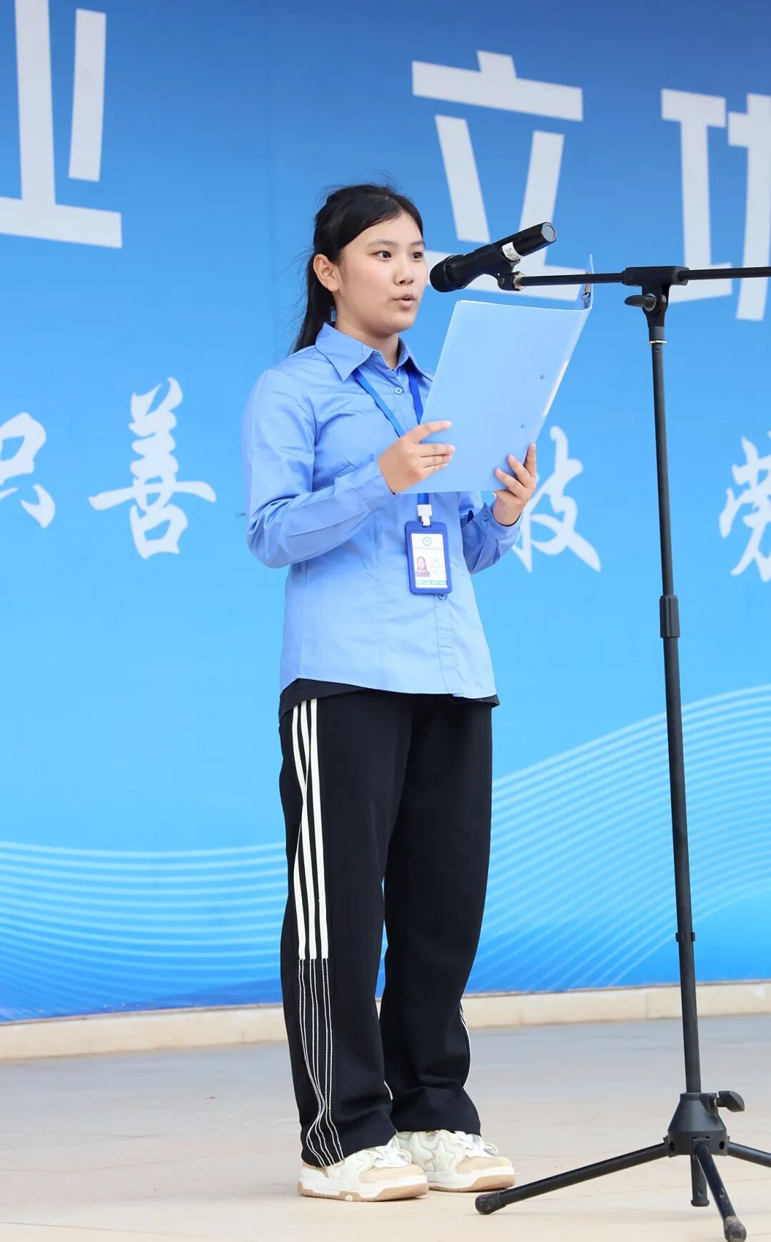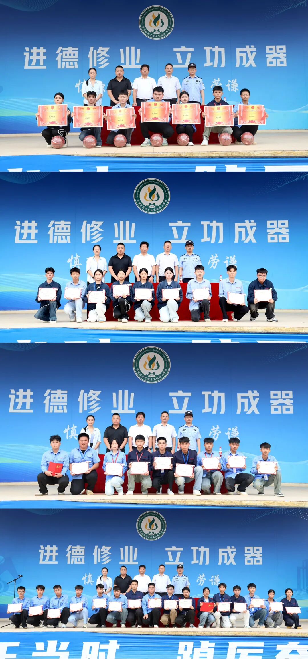 校团委李文书记首先宣读了2024-2025学年度第二学期评优结果。在欢快的乐曲声中,获奖的优秀班级、优秀班干部、优秀团干部和优秀学员代表依次登台,从校领导手中接过象征荣誉的奖状和证书。台下掌声雷动,这既是对获奖者的祝贺,更是对全校师生的激励。