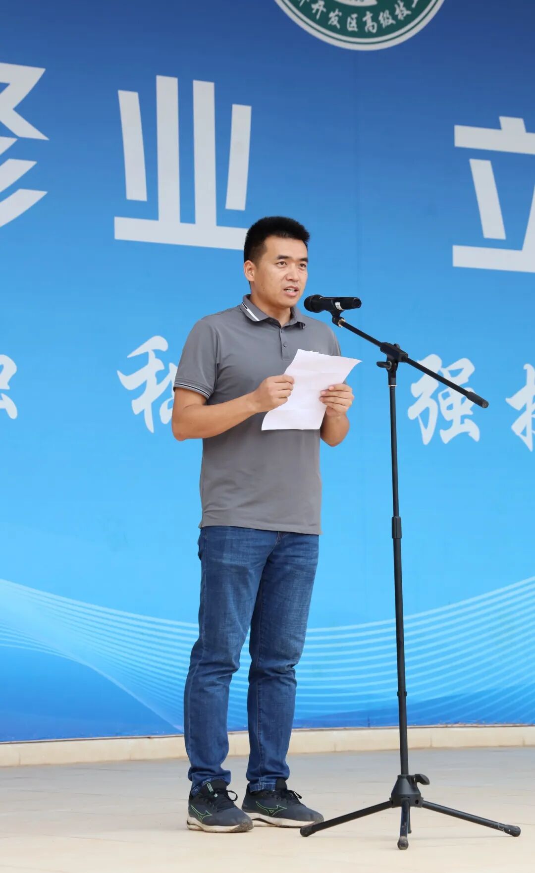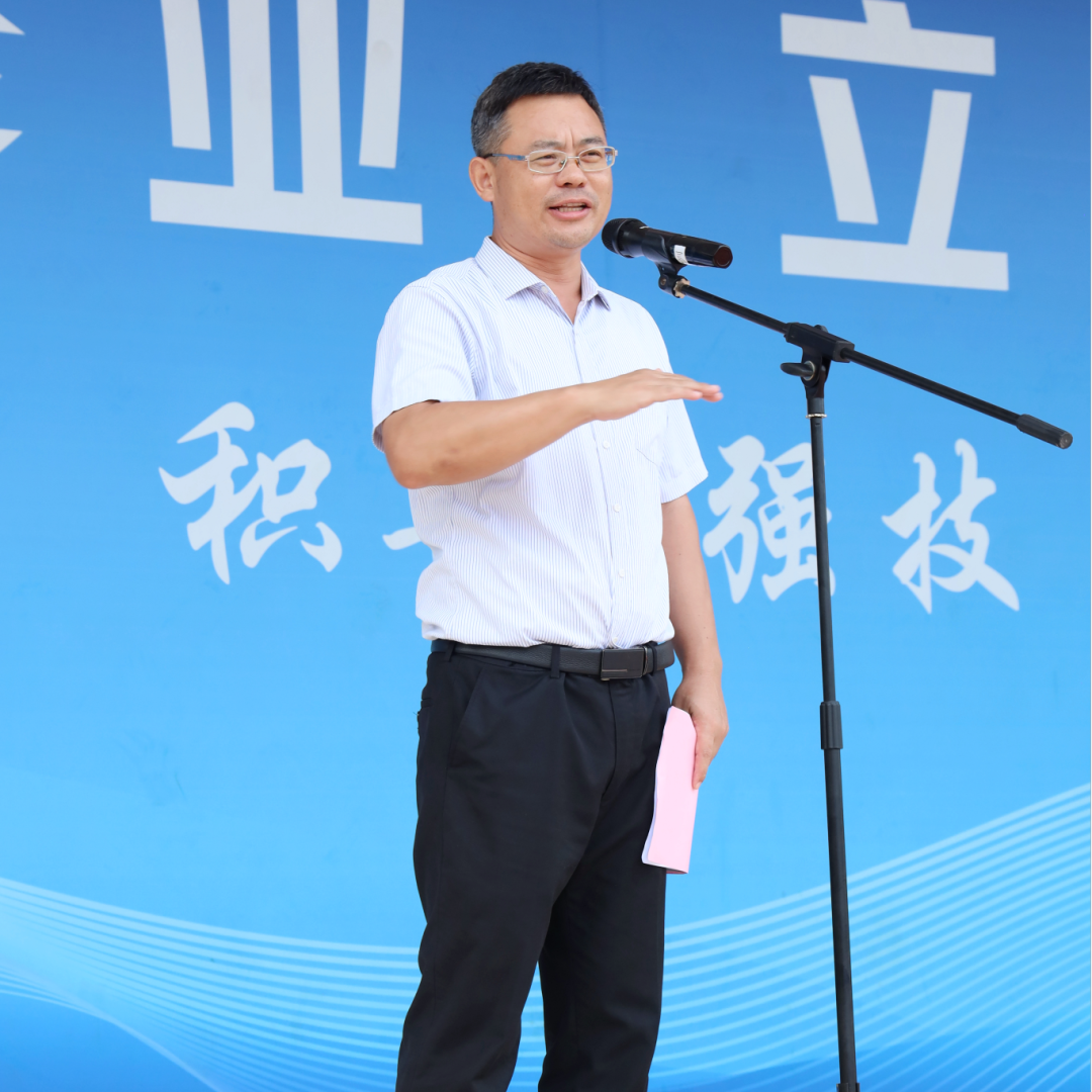 优秀教师代表朱永志老师上台发言,他结合自身教学经历,勉励同学们珍惜时光、苦练技能,争做新时代高素质技能人才。