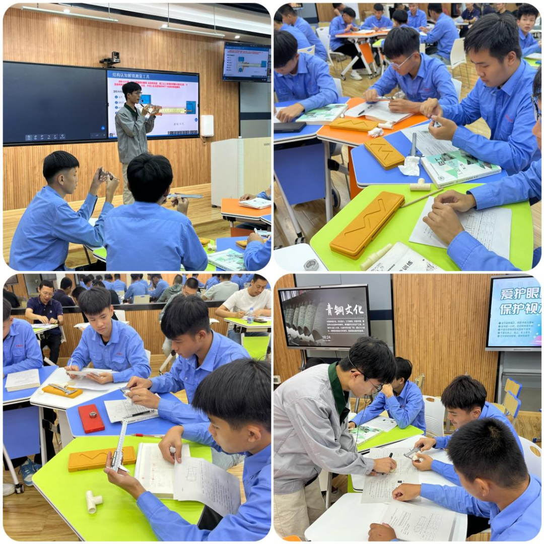 尤孙强老师以培育学生工匠精神与质量意识为出发点,用扎实的专业知识对学生进行实操引导,给予学生小组协作与自主实操的时间,让学生在动手实践中掌握游标卡尺的使用技能。尤孙强老师在传授游标卡尺认知与应用知识的同时,带领学生体会到了机械测量的严谨性与规范性。