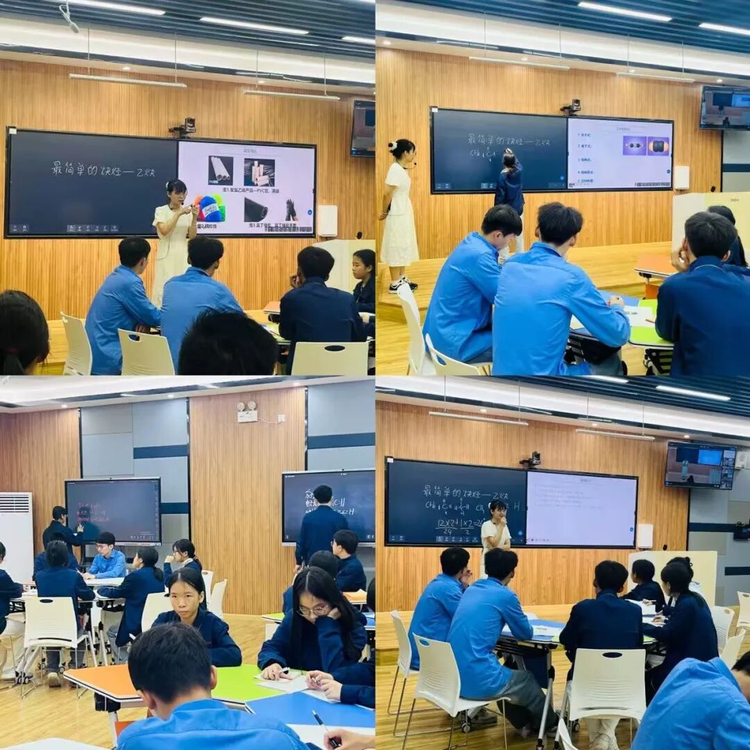 谢丽莲老师以氧炔焰切割金属视频导入,引出乙炔主题。课堂围绕乙炔的结构与性质展开,给予小组自主研讨分子结构的空间,让学生在登台书写、解析构型的过程中掌握乙炔结构认知的核心技能,随后介绍乙烃的物理性质与聚合反应,结合资料卡片拓展电石制乙炔原理。谢老师将安全意识渗透到教学环节,助力学生深刻理解安全操作对专业成长的重要作用。
