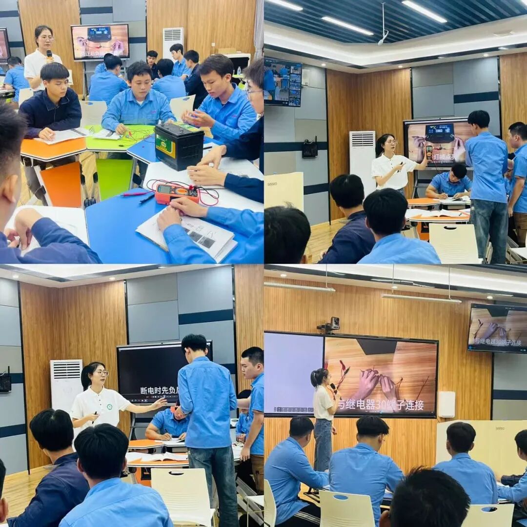 邱阳林老师聚焦学生汽车灯光系统故障检修的实操能力培养与协作素养塑造,用扎实的雾灯电路检修知识对学生耐心引导,给予小组自主分工、共同排查故障的空间,让学生在团队协作中掌握雾灯不亮问题解决的核心技能。在系统传授雾灯故障类型、检测流程及万用表使用方法等知识的同时,邱老师更将合作意识融入教学全过程,带领学生真切体会到汽修工作“单干难成,协作高效”的专业本质,深刻领悟团队配合对于快速精准解决故障、保障维修质量的关键价值。