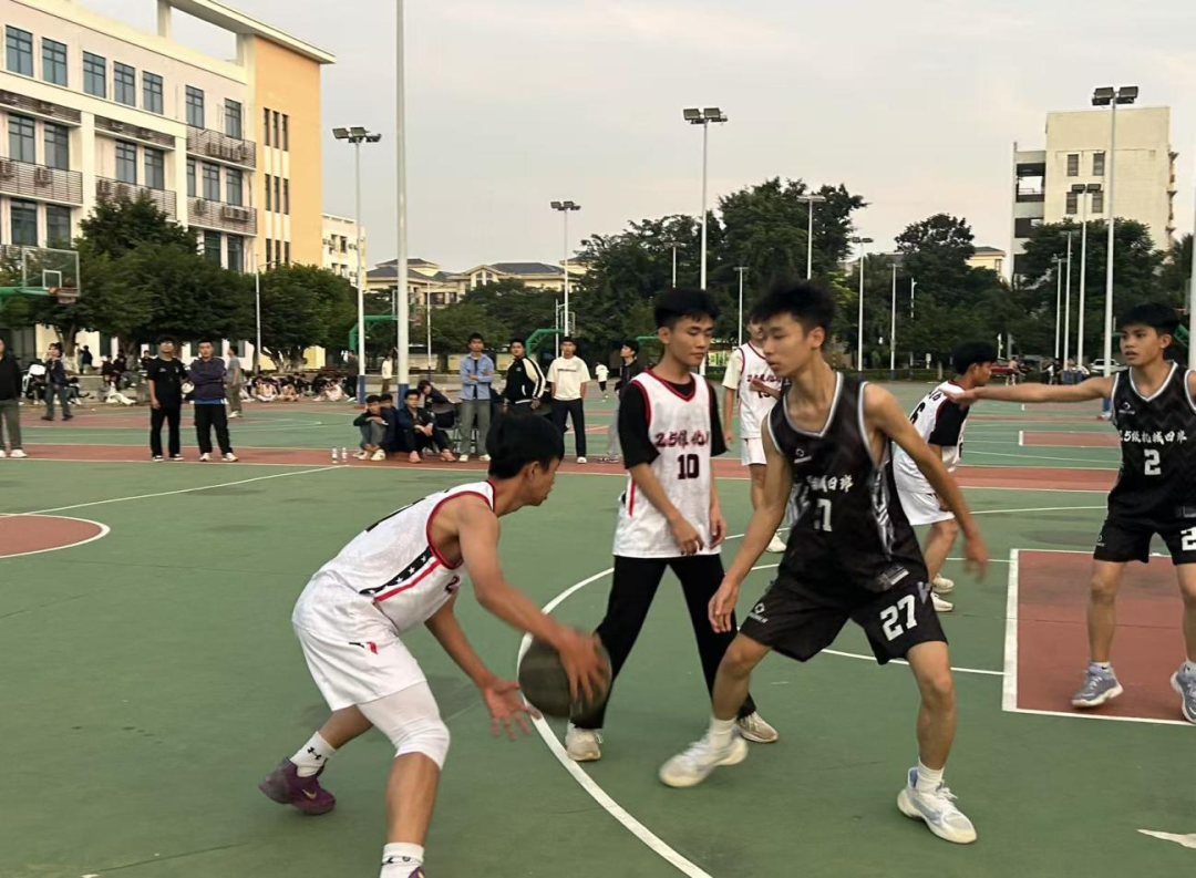 赛场上,队员们精神抖擞、斗志昂扬,抢断、传球、投篮、防守一气呵成,每一个动作都展现出扎实的篮球功底与默契的团队配合。进攻时的犀利突破、防守时的严密布防、比分胶着时的果断反击,让现场掌声与呐喊声此起彼伏。场外,啦啦队员们热情助威,观众席上欢呼声不断,篮球撞击地面的声音与师生的呐喊声交织,汇聚成校园里最激昂的青春旋律。