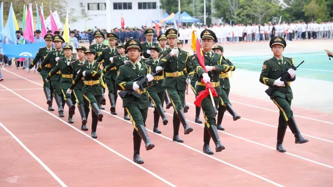 国旗护卫队迈着铿锵步伐率先入场,鲜艳国旗在阳光下熠熠生辉;校旗彩旗队紧随其后,五彩旗帜迎风招展,尽显校园蓬勃朝气。