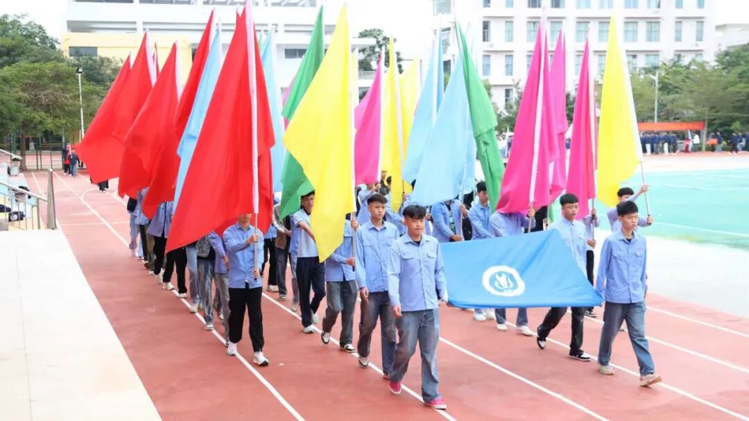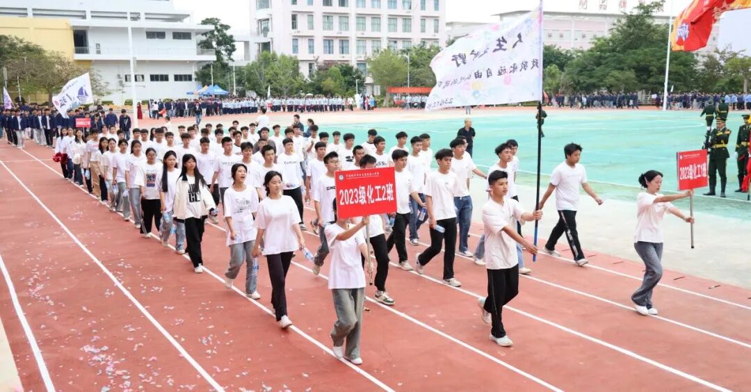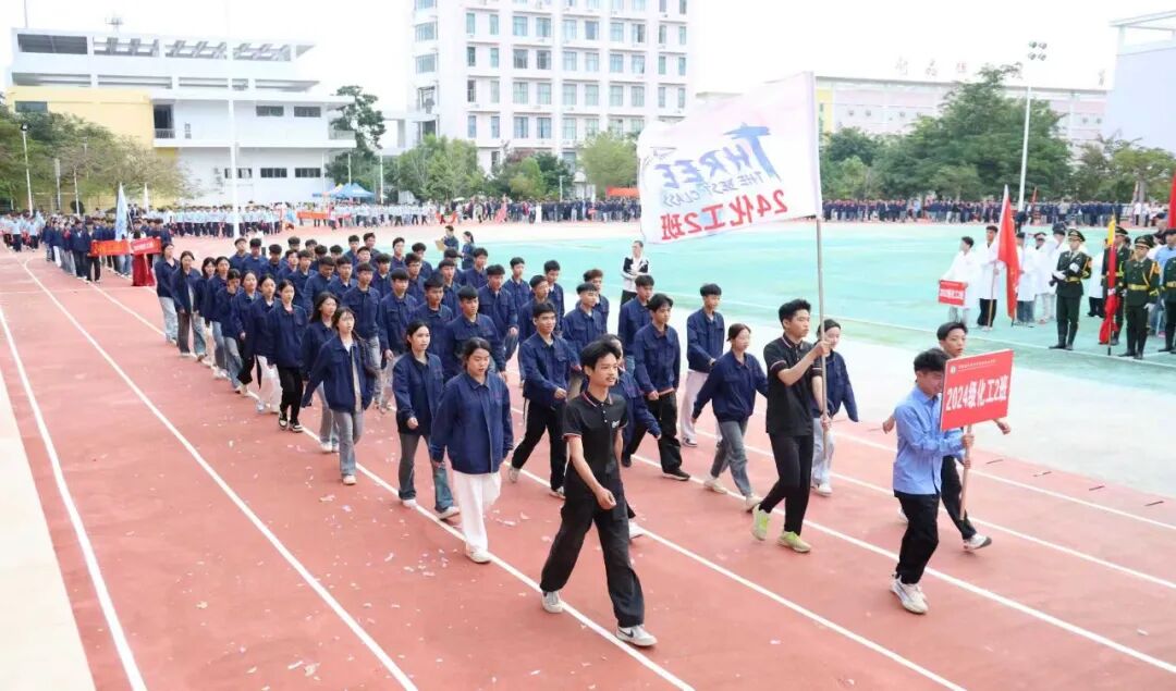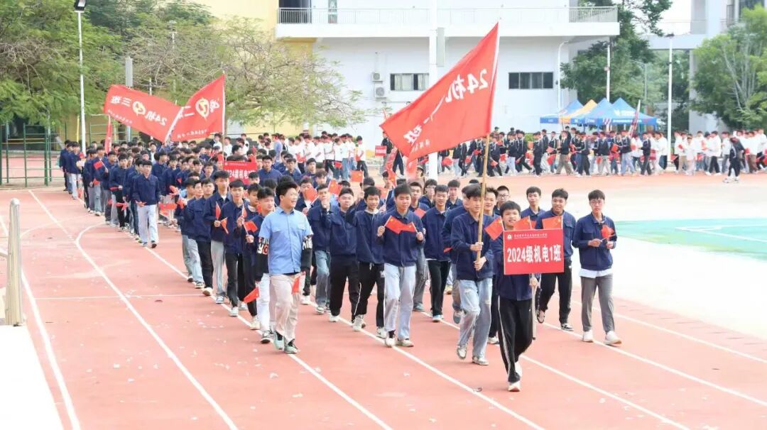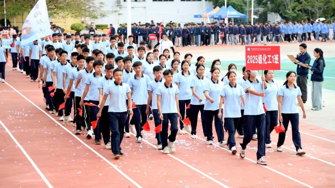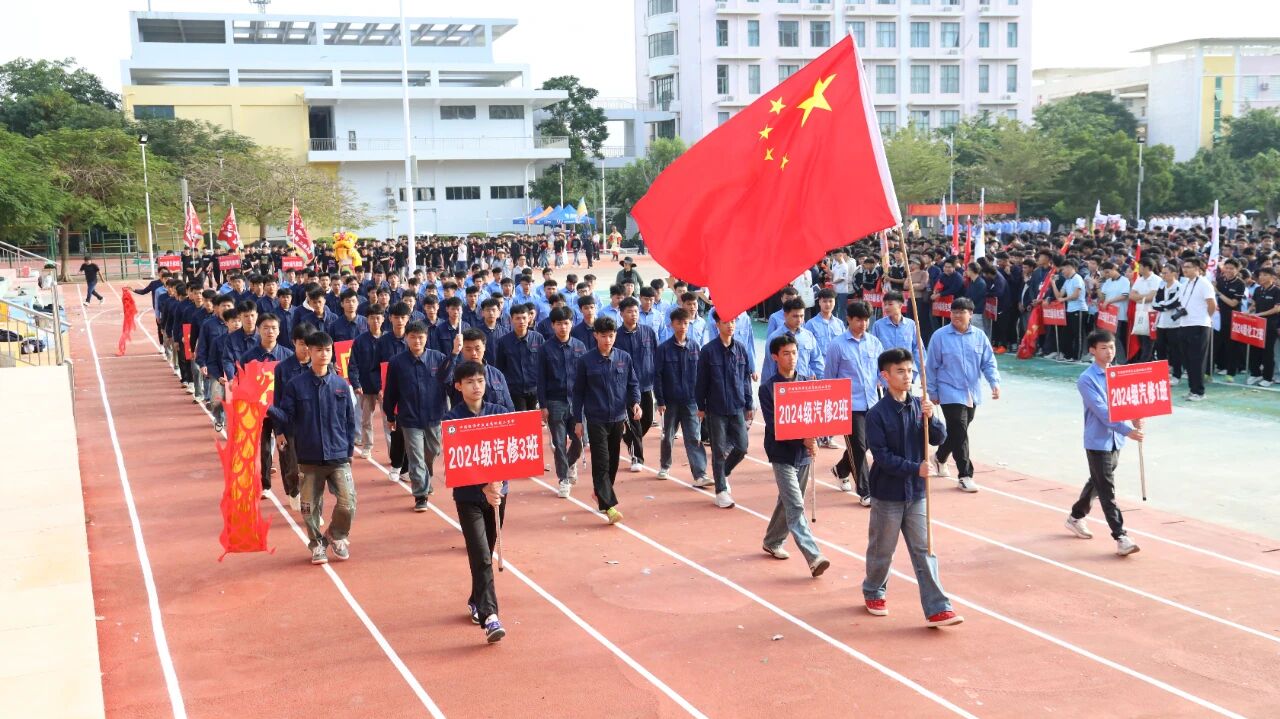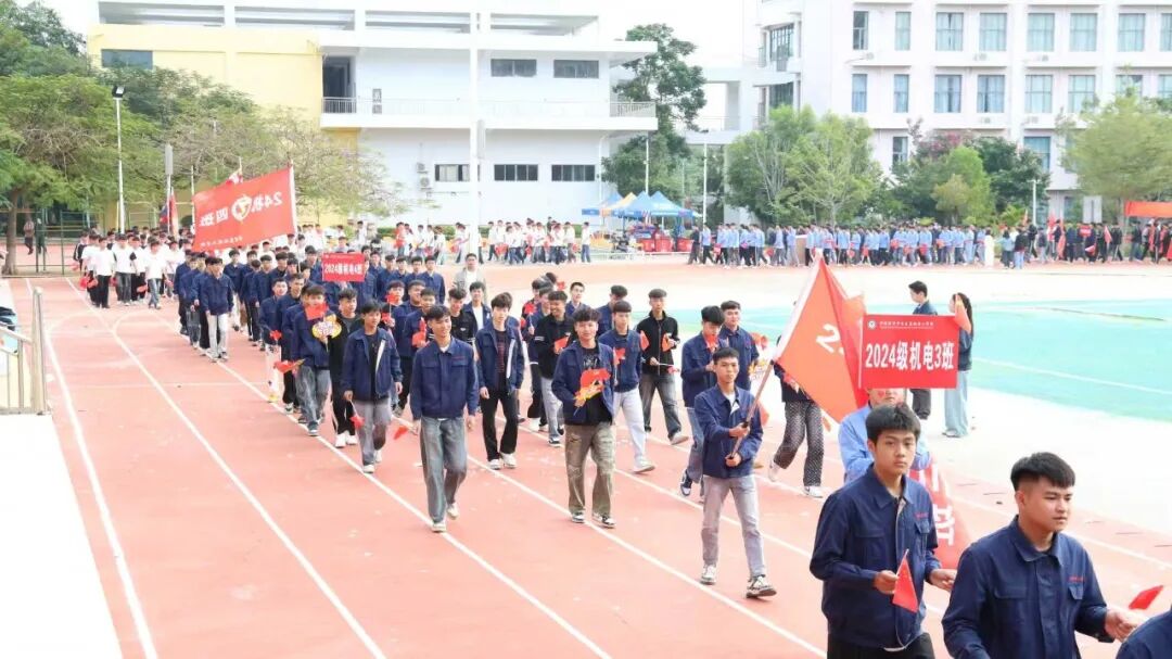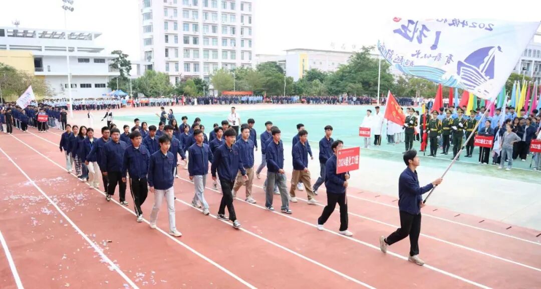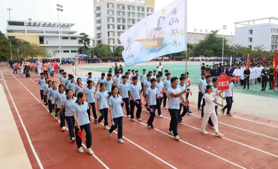 青春朝气漫校园,运动激情燃全场。2025年12月3日上午,洋浦高级技工学校2025年体育节暨第十一届田径运动会开幕式在操场隆重举行,校长国志宏、副校长杨本道、各科室负责人以及各专业(教学)部2000多名师生齐聚一堂,共赴这场活力满满的体育盛会。本次开幕式由杨本道副校长主持,他以昂扬语调宣布大会正式开始,拉开了盛会序幕。