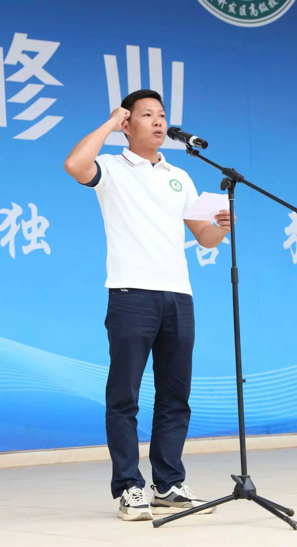 裁判员代表洪玉盛老师庄严宣誓,承诺将严格遵守竞赛规则,尊重选手、秉公执裁,保障赛事顺利进行。
