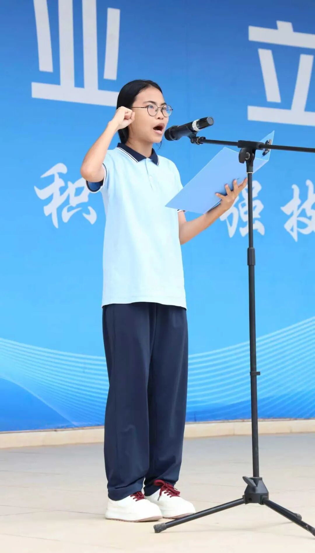 25化工1班吴晶晶代表运动员发言,她表示技工学子既要锤炼专业技能,更要注重体魄强健,代表全体运动员承诺将恪守体育精神,遵守规则、尊重对手,赛出风格与水平。