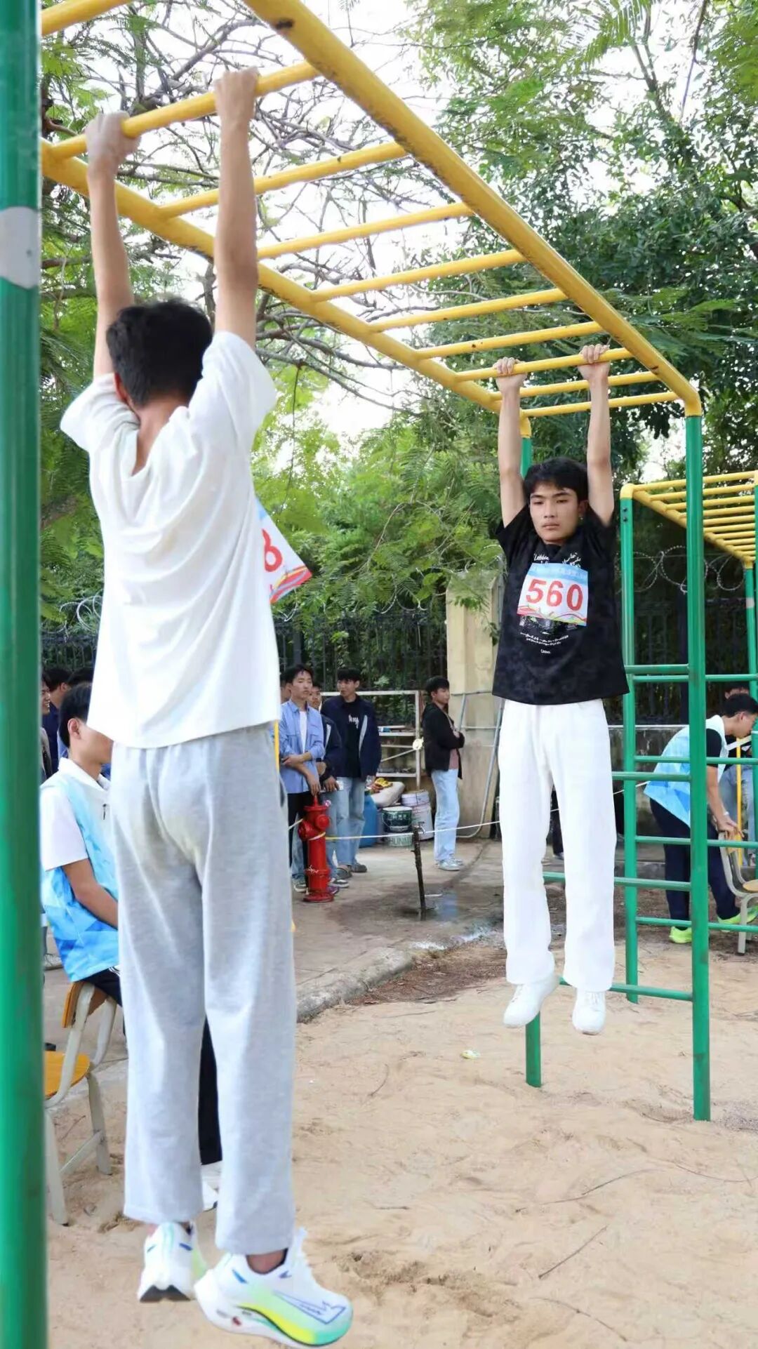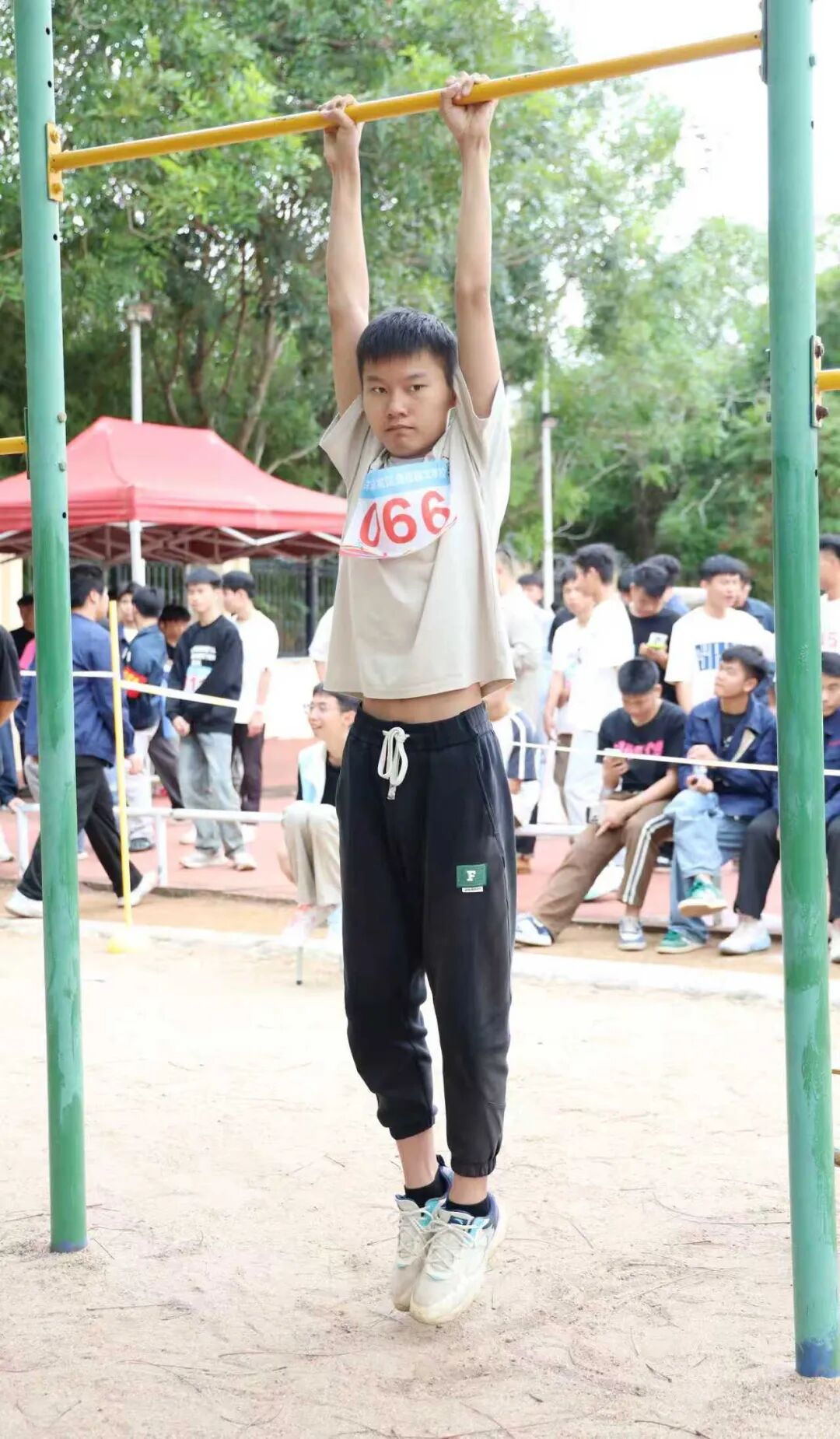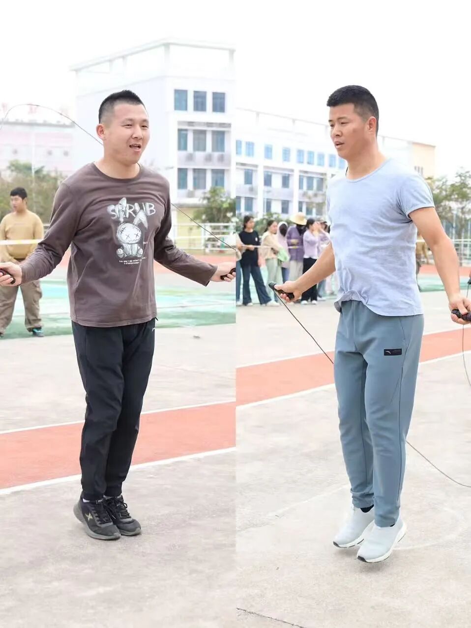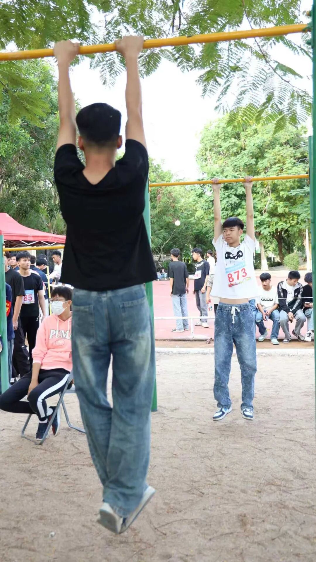 趣味运动赛场向来是“快乐源泉”,笑点与燃点双向拉满!套上彩色布袋的师生们化身灵活“小袋鼠”,蹦跳疾驰间尽显憨态与韧劲;8人跳大绳现场,摇绳者双臂翻飞如飞轮,跳绳者默契衔接、鱼贯而入;6人夹球跑队员肩并肩、手挽手,口号铿锵同步伐整齐;平板支撑赛场秒变“耐力战场”,师生们身姿挺拔如松,汗水浸湿衣衫仍咬牙坚持;单杠挑战中,健儿纵身一跃握杆发力,每一次突破都赢得阵阵喝彩。