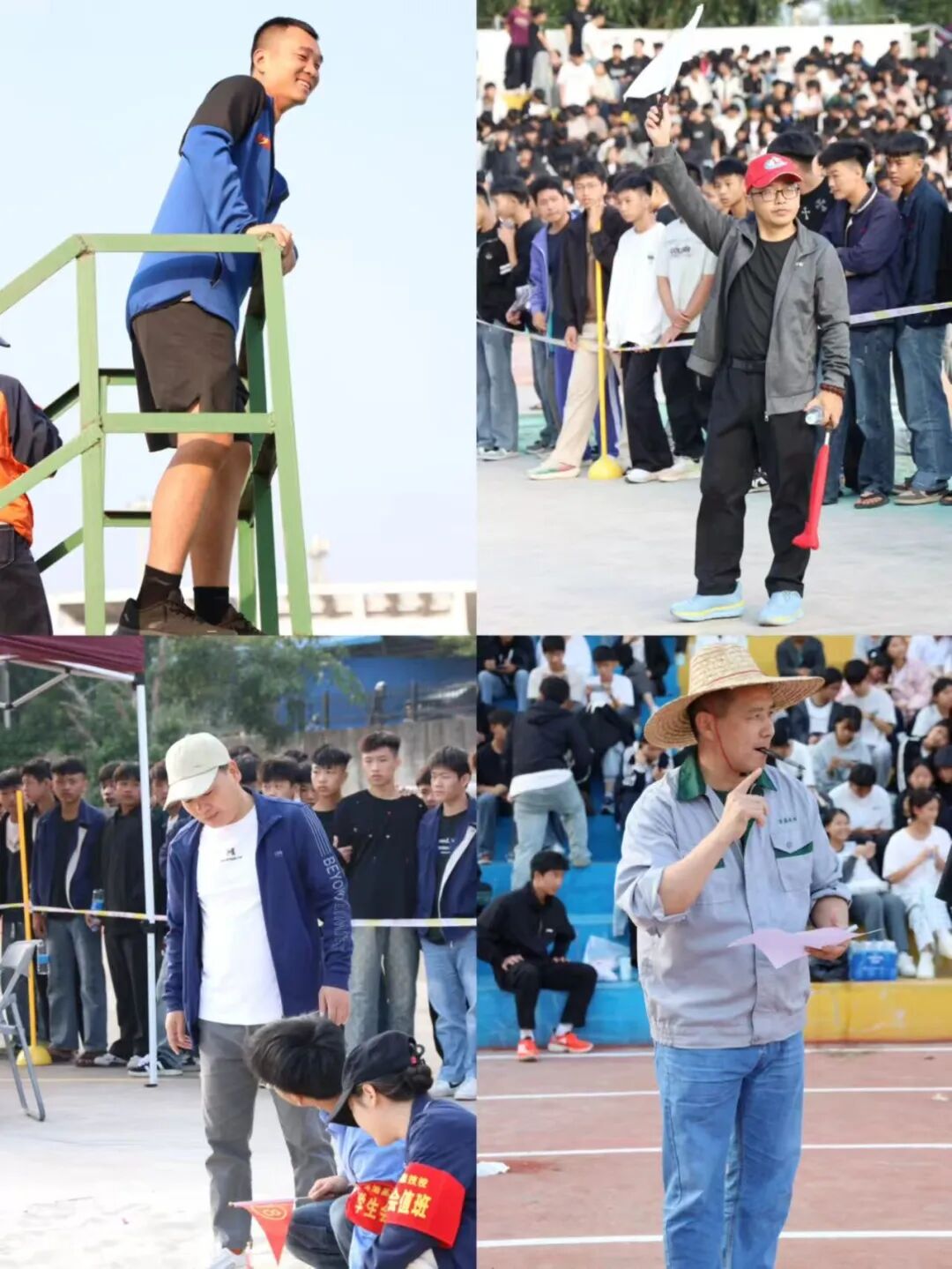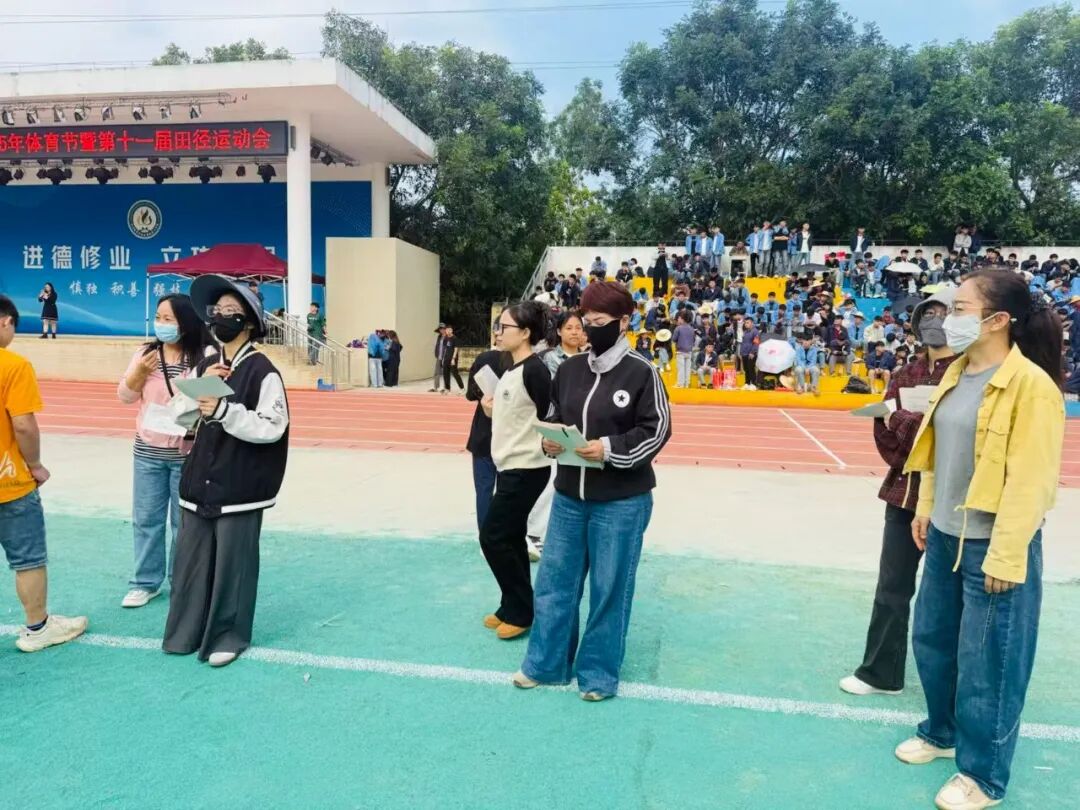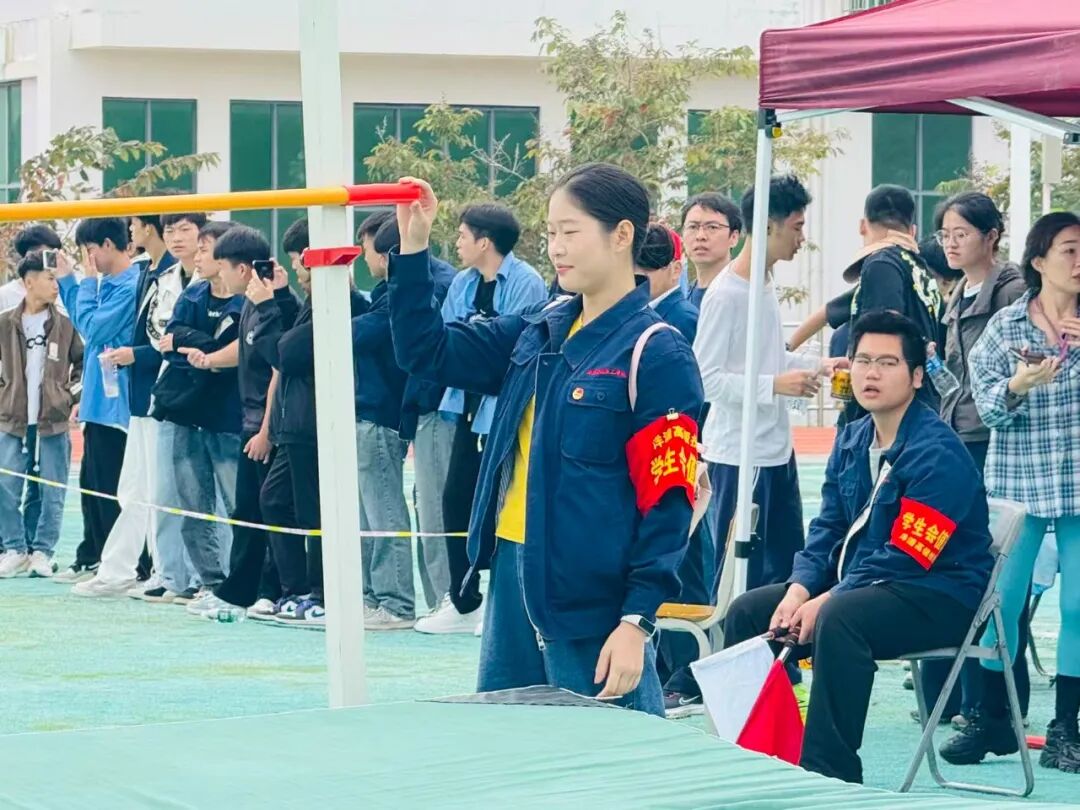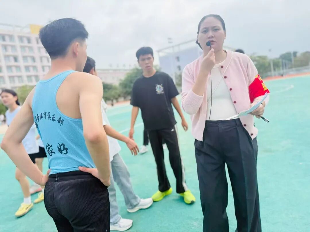 赛场之上热血沸腾,赛场之下温暖同行。检录处的老师们早早到位,细致核对选手信息、有序组织入场,用严谨态度筑牢赛事第一关;成绩登记处的老师们专注记录、快速核算,笔尖飞舞间定格每一份荣耀,确保结果准确无误;学生会志愿者们穿梭赛场,搬运器材、维护秩序、补给饮水,哪里有需要就奔赴哪里,用青春热忱点亮服务微光;广播站成员们坚守播音台,实时播报赛事进程、传递加油呐喊,用激昂声波点燃全场氛围;裁判员们坚守岗位,目光如炬、秉公执裁,用专业与公正保障每一场比赛的顺利进行。没有聚光灯照耀,没有掌声喝彩,但正是他们的分工协作与默默付出,让运动会各环节井然有序,成为赛场上最坚实的后盾。