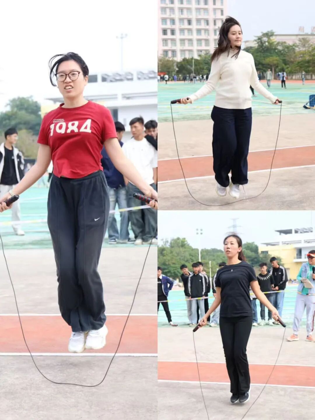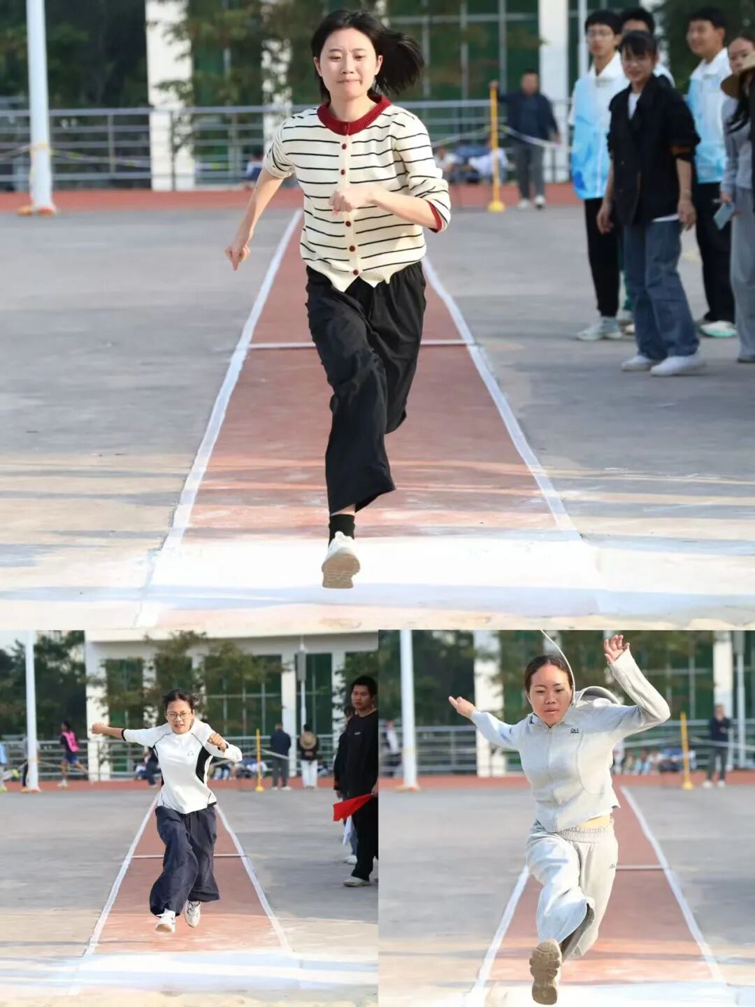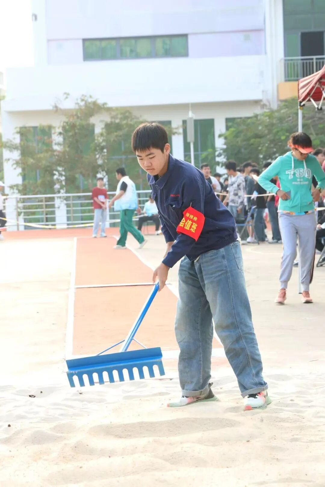 赛场之上热血沸腾,赛场之下温暖同行。检录处的老师们早早到位,细致核对选手信息、有序组织入场,用严谨态度筑牢赛事第一关;成绩登记处的老师们专注记录、快速核算,笔尖飞舞间定格每一份荣耀,确保结果准确无误;学生会志愿者们穿梭赛场,搬运器材、维护秩序、补给饮水,哪里有需要就奔赴哪里,用青春热忱点亮服务微光;广播站成员们坚守播音台,实时播报赛事进程、传递加油呐喊,用激昂声波点燃全场氛围;裁判员们坚守岗位,目光如炬、秉公执裁,用专业与公正保障每一场比赛的顺利进行。没有聚光灯照耀,没有掌声喝彩,但正是他们的分工协作与默默付出,让运动会各环节井然有序,成为赛场上最坚实的后盾。