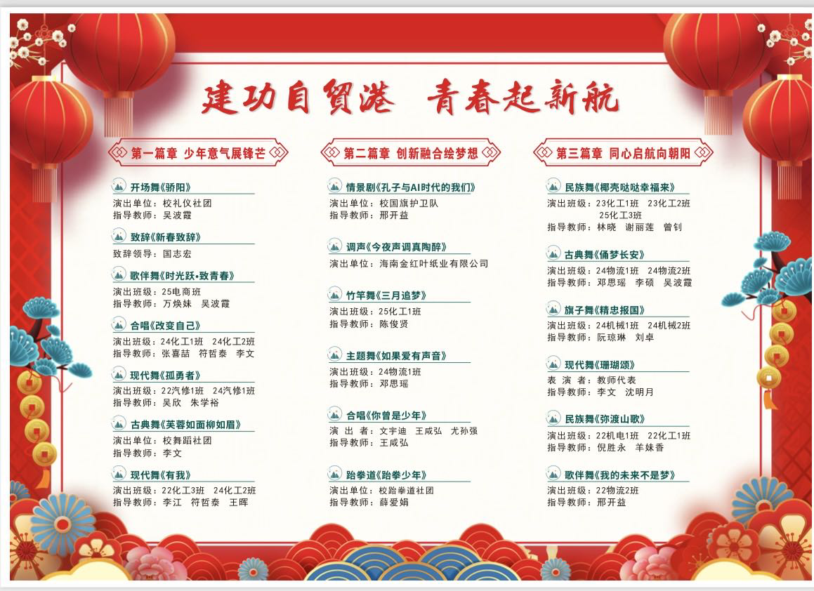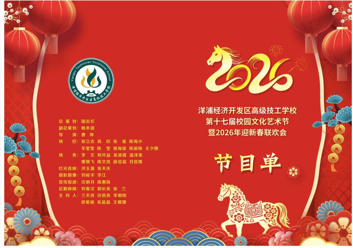 聚焦 | 洋浦高级技工学校迎新春联欢晚会预告来啦~作者:ypjxhtgl 发布时间:2026-1-9 信息来源: 海南省洋浦技工学校 浏览量:200