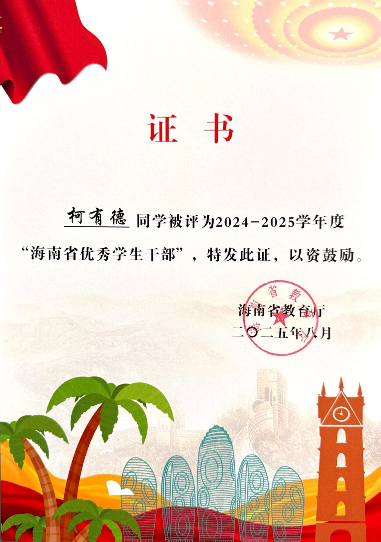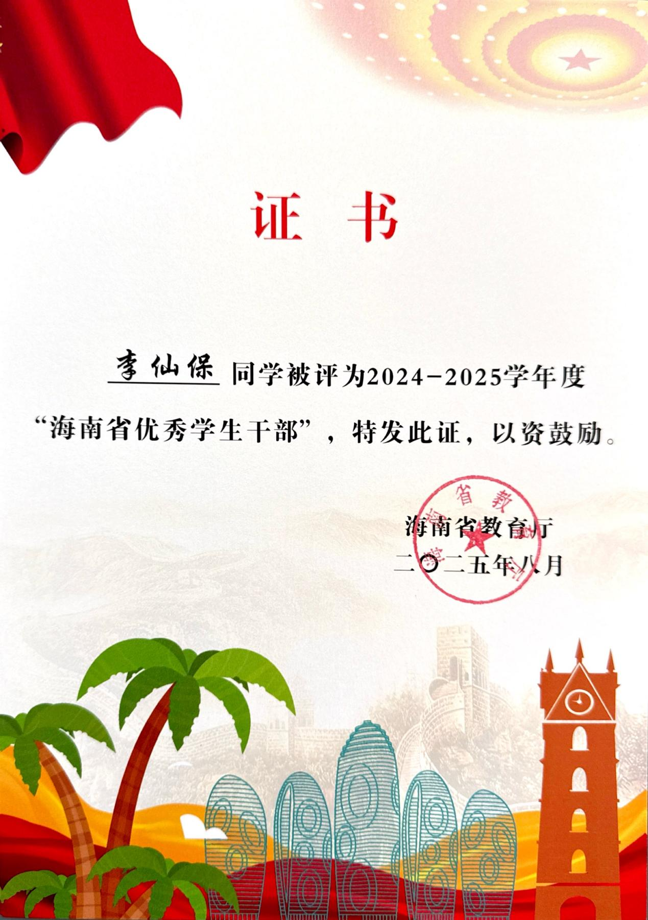 在2024-2025学年度海南省优秀学生评选活动中,我校学子凭借突出的综合素质与优异表现,喜获多项荣誉:
