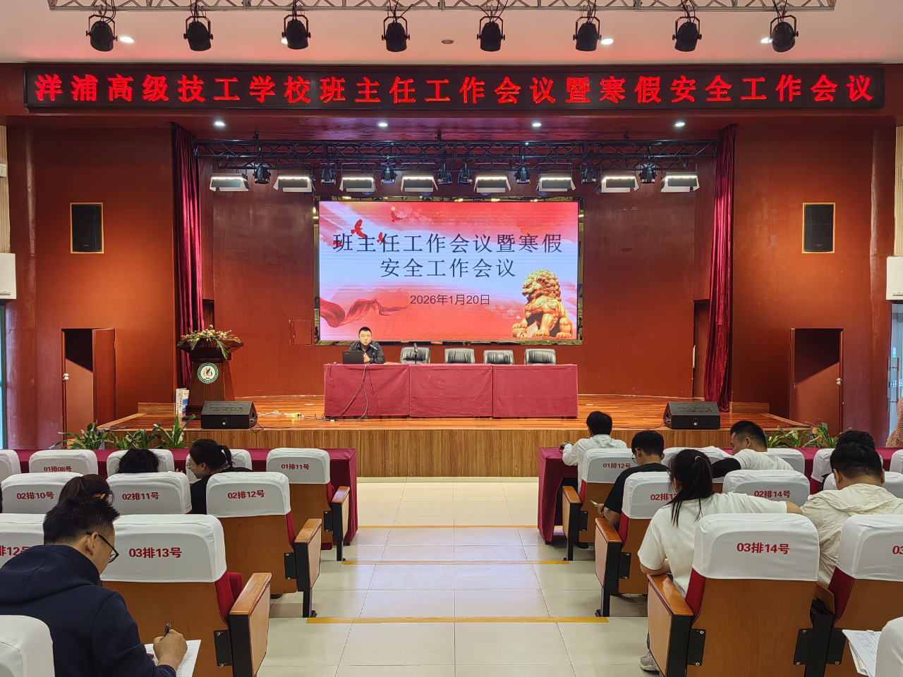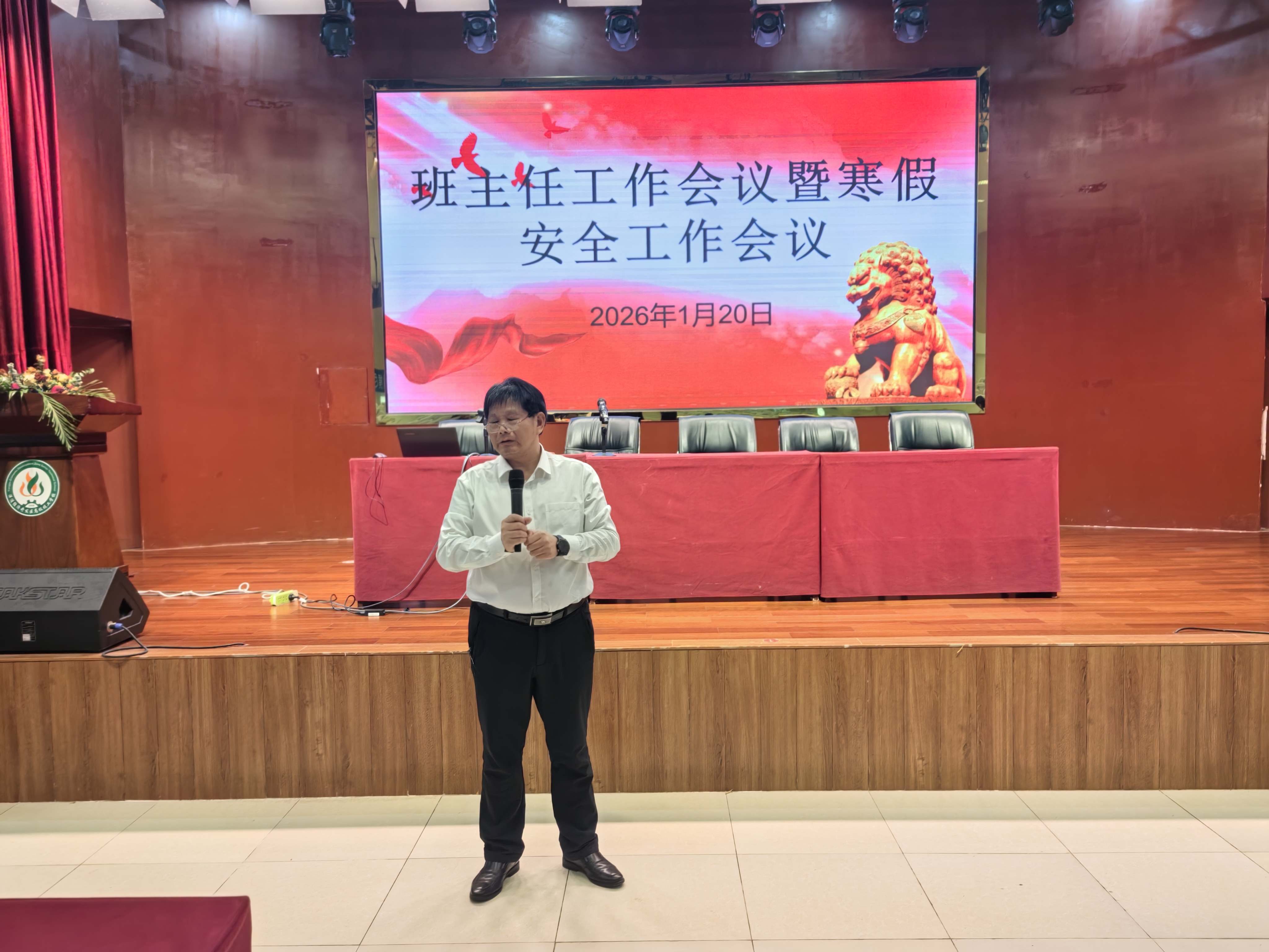 寒假将近,为深入贯彻落实上级部门关于假期安全工作的部署要求和我校实际情况,切实筑牢校园安全防线,保障全体师生度过一个平安、愉快、充实的假期,1月20日,我校在多功能厅召开班主任工作会议暨寒假安全工作会议。会议精准传达上级文件精神,聚焦寒假安全管理、学生教育引导、春季开学筹备等核心任务,细化工作举措。会议由学生科曹帅主任主持,刘春汉主任、各专业部部长及全体班主任参加会议。