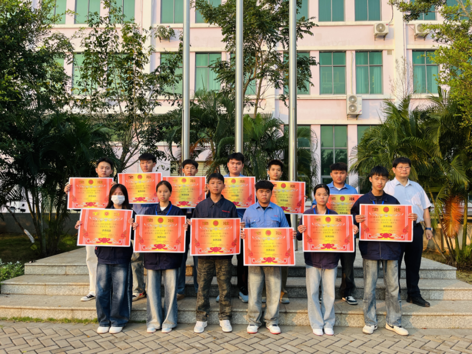 为深入挖掘省级优秀学生典型,发挥省级荣誉的示范带动作用,经班级推荐、各专业层层选拔、学校综合评审,我校22物流2班赵璐、22机械1班李守邦、21机电1班李克芳同学荣获2024-2025学年“海南省三好学生”荣誉称号;22 汽修1班、21化工2班李仙保同学荣获2024-2025学年“海南省优秀学生干部” 荣誉称号。杨本道副校长为省级荣誉获得者颁发荣誉证书,鼓励他们珍惜荣誉、再接再厉,在全省范围内展现我校学子的卓越风采。