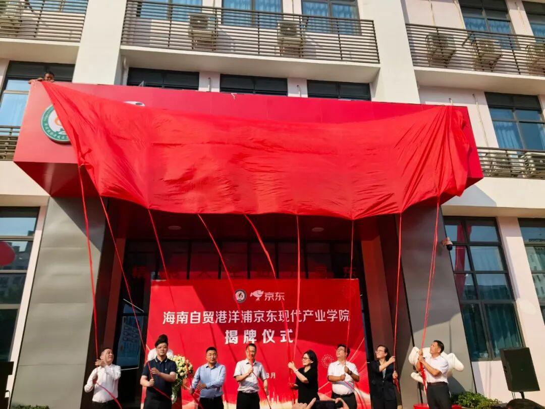 在热烈庄重的氛围中,海南省人力资源社会保障厅领导、市领导、京东集团领导、洋浦高级技工学校领导共同为海南自贸港洋浦京东现代产业学院揭牌。随着红绸缓缓落下,标志着学院正式成立,政校企协同育人迈入崭新阶段。