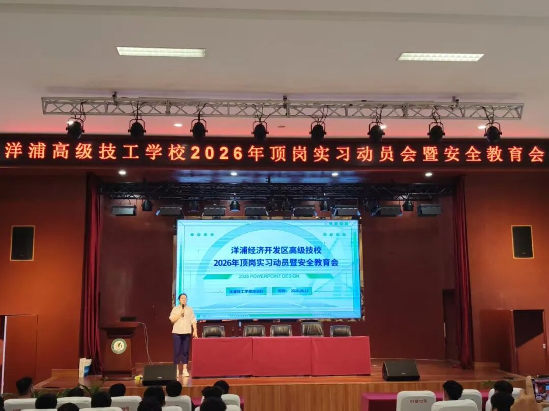 春风送暖,万物勃发。在这生机盎然、满怀希冀的美好时节,洋浦经济开发区高级技工学校全体即将奔赴实习岗位的同学们怀着无比激动与欣喜的心情,欢聚一堂、共赴实习启航之约。为扎实做好2026年学生顶岗实习动员部署与安全教育工作,4月13、15日,学校分两场召开顶岗实习动员暨安全教育大会,2026届顶岗实习学生及全体班主任参会,会议由培训科张立志老师主持。
