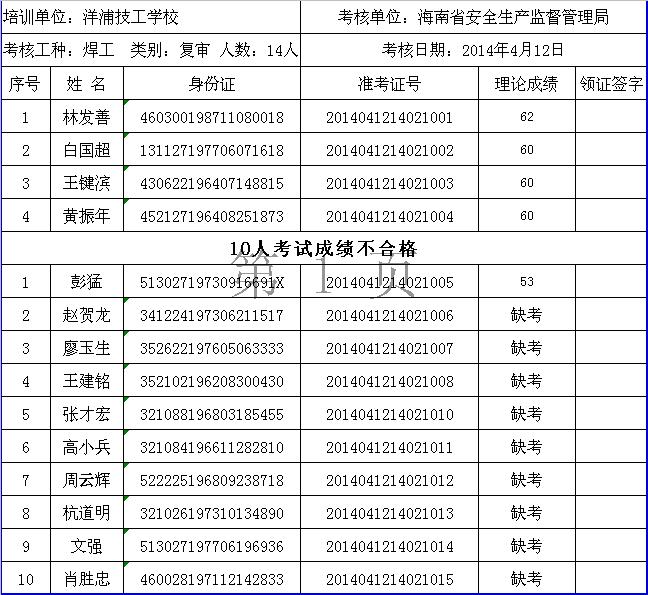 20140412期特种作业成绩表(焊工复审)