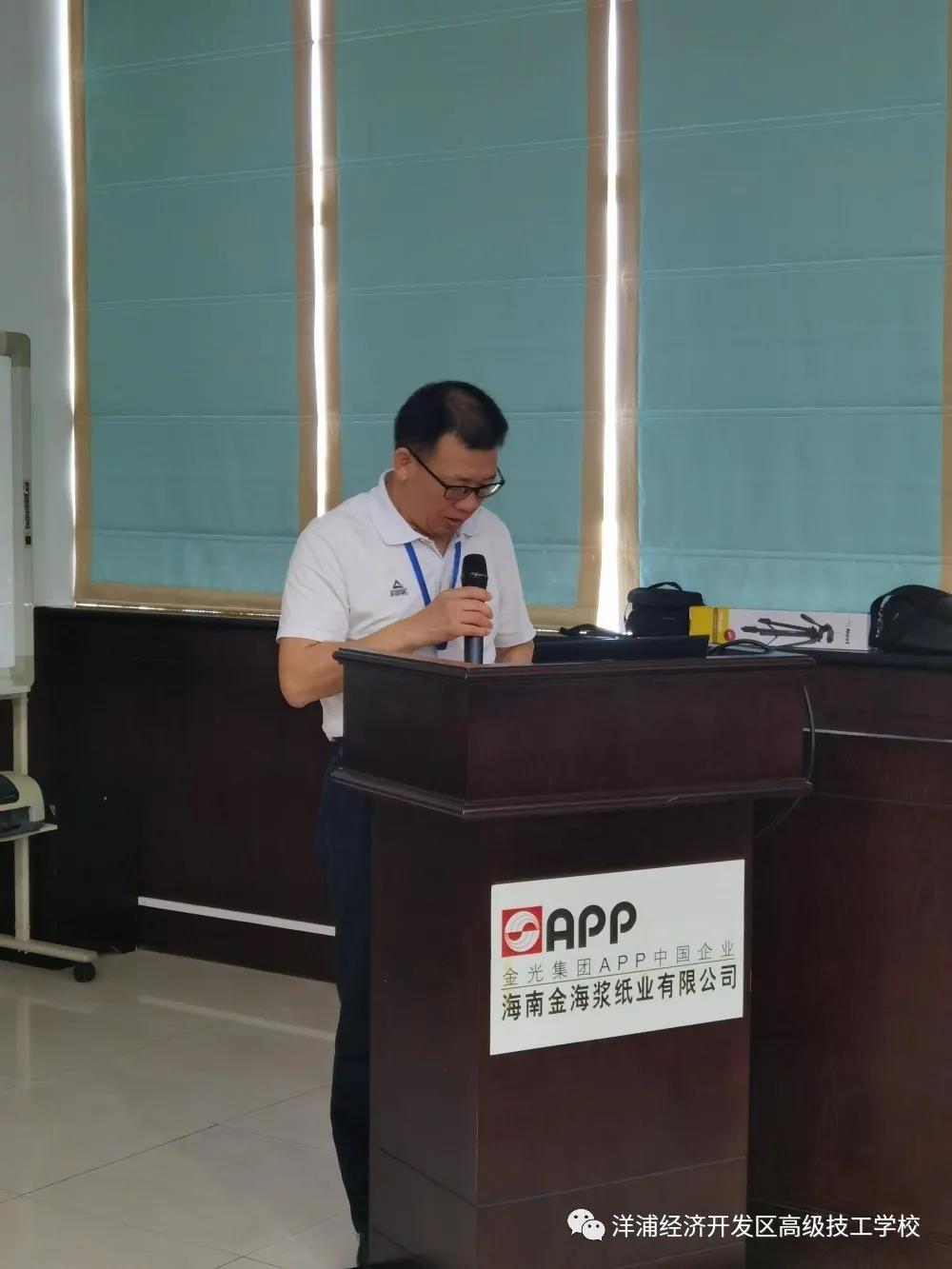 随后,洋浦就业局申大峰副局长讲话。申局长对我校和金海浆纸有限公司的培训工作给予了充分的肯定,希望利用此次培训,校企双方都能达到理想满意效果。