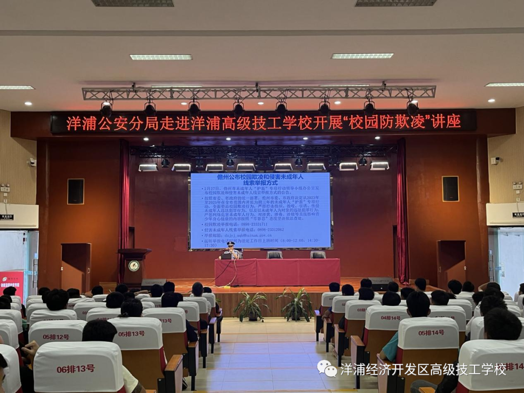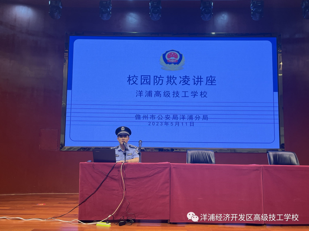 勿以善小而不为,勿以恶小而为之。为贯彻落实儋州市“护苗”专项行动精神,进一步弘扬社会主义法治精神,提高学生法律意识,增强学生法治观念,切实有效的预防、杜绝校园欺凌事件的发生,强化学校安全管理,保障学生身心健康成长,5月11日下午4时,我校邀请儋州市公安局洋浦分局符壮核警官到校开展“校园防欺凌”讲座,与学生们一起向校园欺凌说“不”。讲座由校办杨本道主任主持。