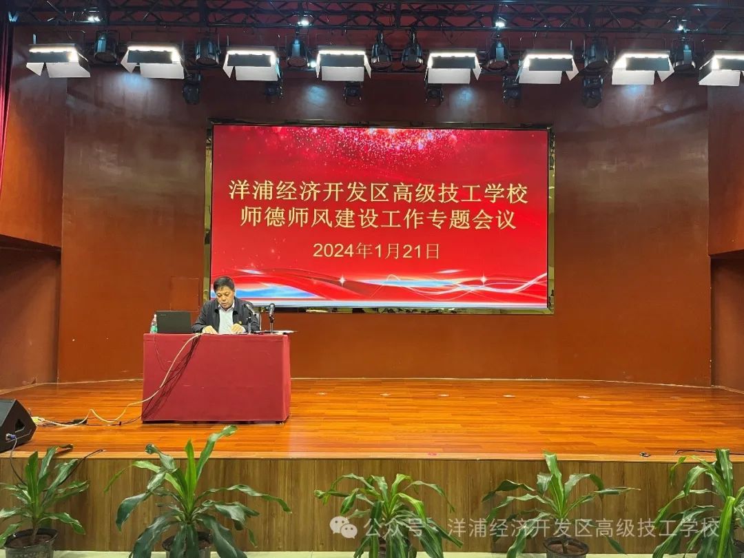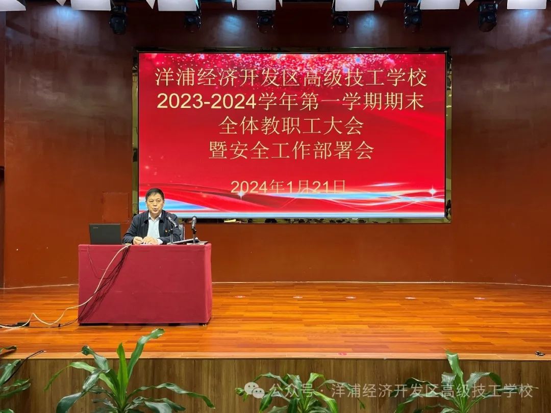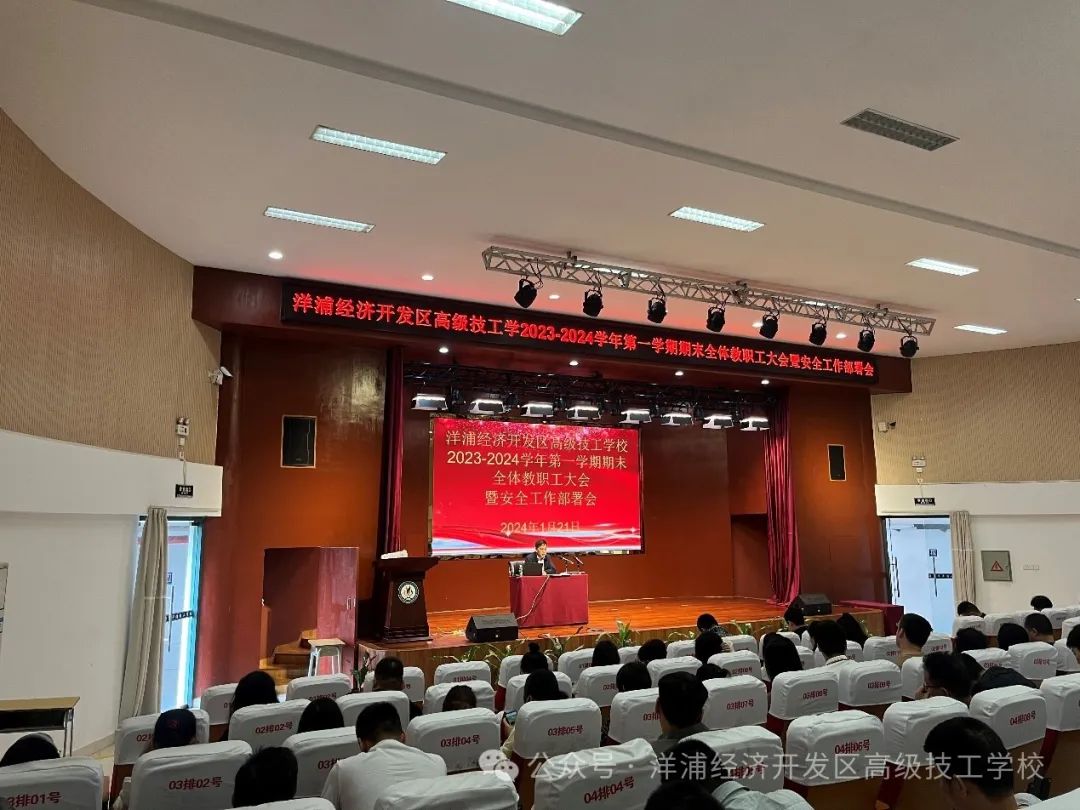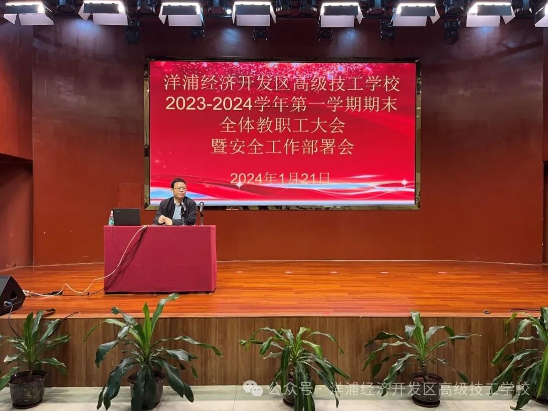 岁序更替,华章日新。转眼间本学期已经结束。忙碌、充实、转变、提升,这是对过去一学期最好的诠释;坚持、自信、奋进、超越,这是对未来最美的期许。1月21日上午9时,洋浦高级技工学校在多功能厅召开了2023——2024学年度第一学期期末教职工大会暨安全工作部署会。