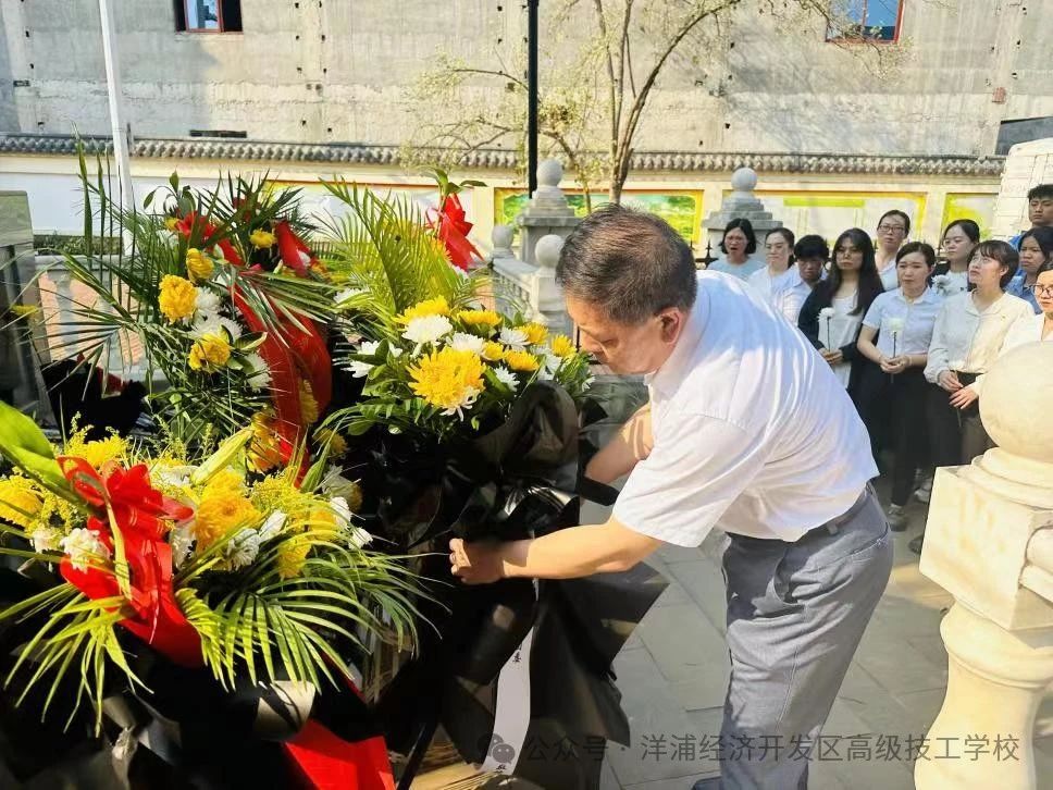 党支部书记国志宏同志代表党支部向革命先烈敬献花篮并整理绶带。全体党员同志及团员代表向纪念碑默哀1分钟并三鞠躬,深切缅怀所有为抵御外侵、保卫祖国、保卫家乡而牺牲的革命英烈。