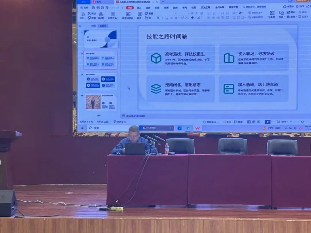 讲座中,顾长庆大师并未回避前行路上的坎坷与风雨。他动情地分享了职业生涯中曾经遭遇的重大挫折,那些近乎放弃的艰难时刻,以及最终如何凭借对技能的无限热爱、对极致的执着追求和永不言败的坚守,一次次战胜困难,实现自我超越。他的故事生动诠释了“千淘万漉虽辛苦,吹尽狂沙始到金”的真谛,让在场的师生深刻体会到成功背后所蕴含的艰辛与付出。