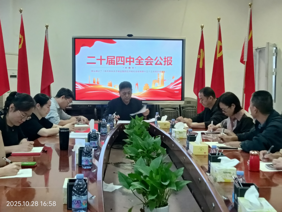 2025年10月28日,洋浦经济开发区高级技工学校党支部召开专题会议,集中传达学习党的二十届四中全会精神及10月24日省委常委会(扩大)会议精神,党支部书记、校长国志宏同志主持会议,领学二十届四中全会公报并组织观看专题报道。党支部副书记、副校长杨本道同志,党支部支委及全体党员参加会议。