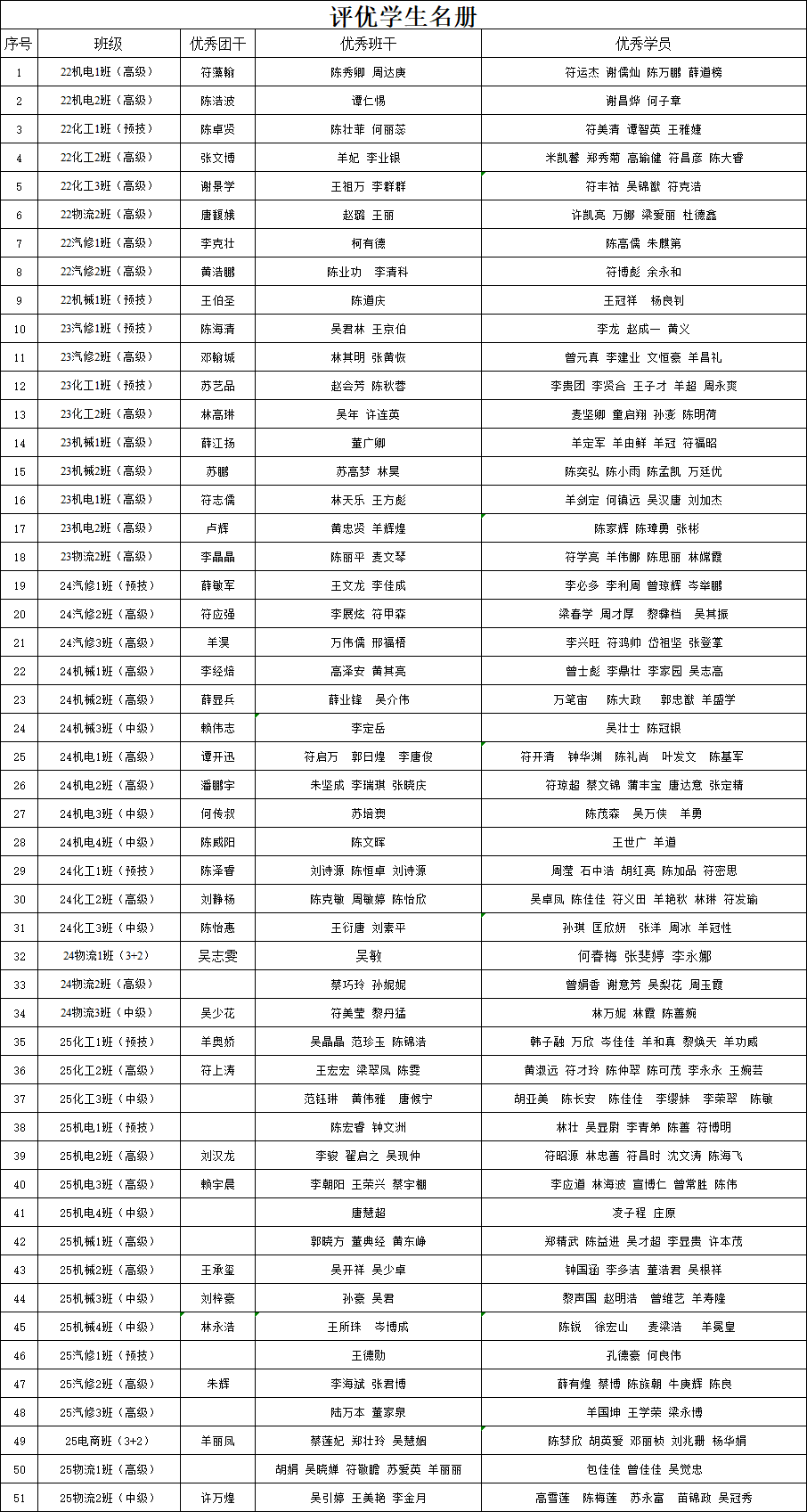班级优秀学员、班干、团干颁奖