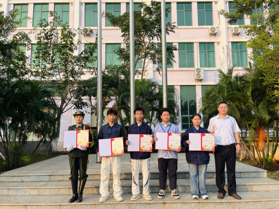 为深入挖掘省级优秀学生典型,发挥省级荣誉的示范带动作用,经班级推荐、各专业层层选拔、学校综合评审,我校22物流2班赵璐、22机械1班李守邦、21机电1班李克芳同学荣获2024-2025学年“海南省三好学生”荣誉称号;22 汽修1班、21化工2班李仙保同学荣获2024-2025学年“海南省优秀学生干部” 荣誉称号。杨本道副校长为省级荣誉获得者颁发荣誉证书,鼓励他们珍惜荣誉、再接再厉,在全省范围内展现我校学子的卓越风采。