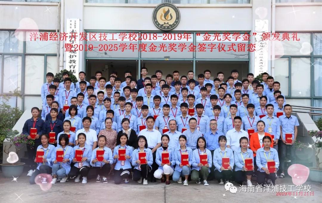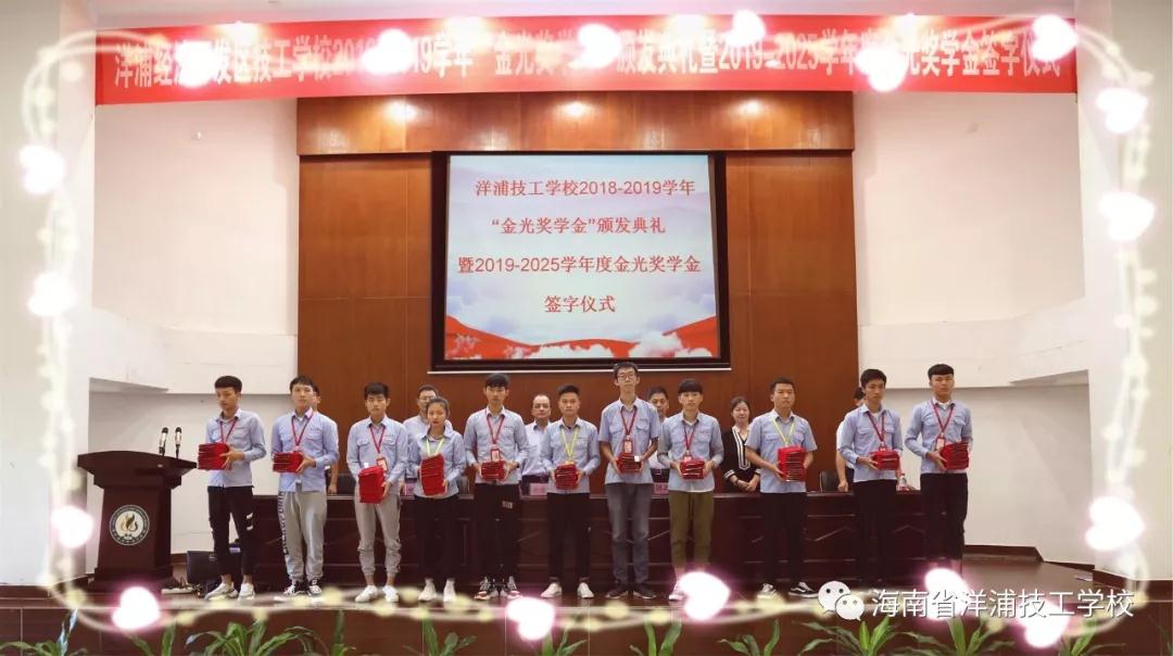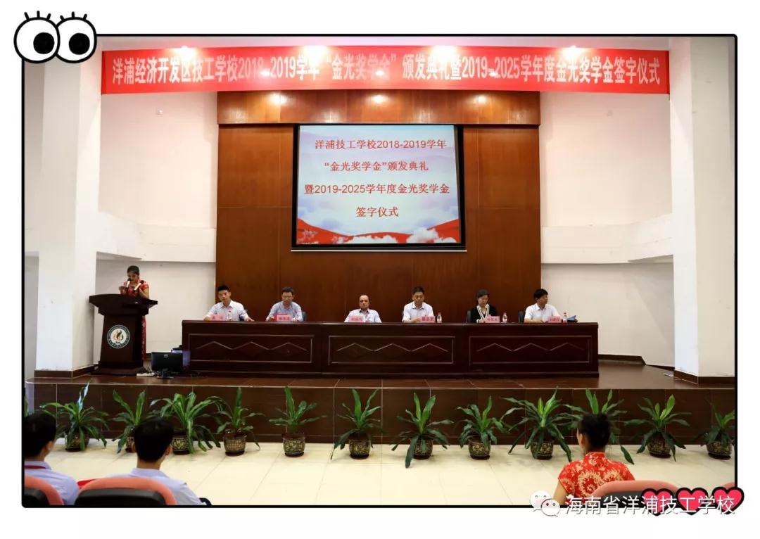 11月21日(周四)下午四点,洋浦技工学校2018-2019学年“金光奖学金”颁发典礼暨2019-2025学年度金光奖学金签字仪式在我校多功能厅隆重举行,校办杨本道主任主持了会议。