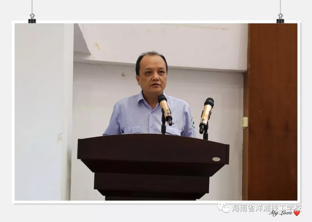 会议议程第七项:海南金光助学与环保基金会理事、海南金海浆纸业有限公司总经理室处长谢盛杰先生致辞。谢处长肯定了我校的师资和办学质量,对我校毕业生在金海的优异工作表现表示赞赏,并代表公司表达继续加强与我校深入开展校企合作的信心和强烈愿望。谢处长还向同学们提出了殷切期望,他说,洋浦的产业发展需要大量技工人才的支持,中国作为制造业大国需要每一个学员贡献力量,希望同学们好好学习技能、接续奋进,不负众望!