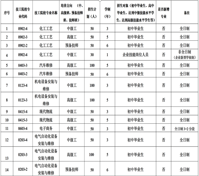 继续面向全国招收应往届初高中毕业学生、城乡劳动者、退役军人、返乡农民工等符合招生条件的生源。凡具有初中及同等学历,身体健康,品行端正的人员均可以报名。